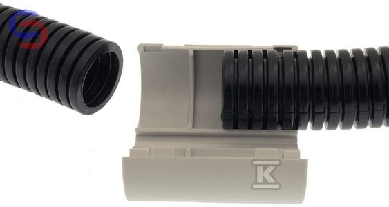 Wytrzymała rura osłonowa karbowana o średnicy 11x16 mm, samogasnąca, z wytrzymałością na rozciąganie 750N. W komplecie złączka zatrzaskowa CR16 do rur o średnicy 15-16 mm.