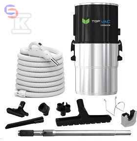 Jednostka centralna odkurzacza TOPVAC CHINOOK z kompletnym zestawem do sprzątania. Wymiary urządzenia to 0.76 x 0.34 x 0.32 m, a waga wynosi 20 kg. Idealna do instalacji centralnego odkurzania w budynkach mieszkalnych i komercyjnych. Produkt gwarantuje wysoką wydajność i niezawodność.